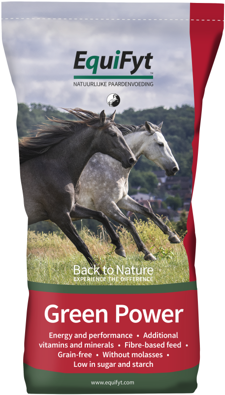 Green Power is een breed inzetbaar granenvrij voeder voor sportpaarden, dekhengsten en voor paarden die ziek zijn of herstellen van een ziekte.